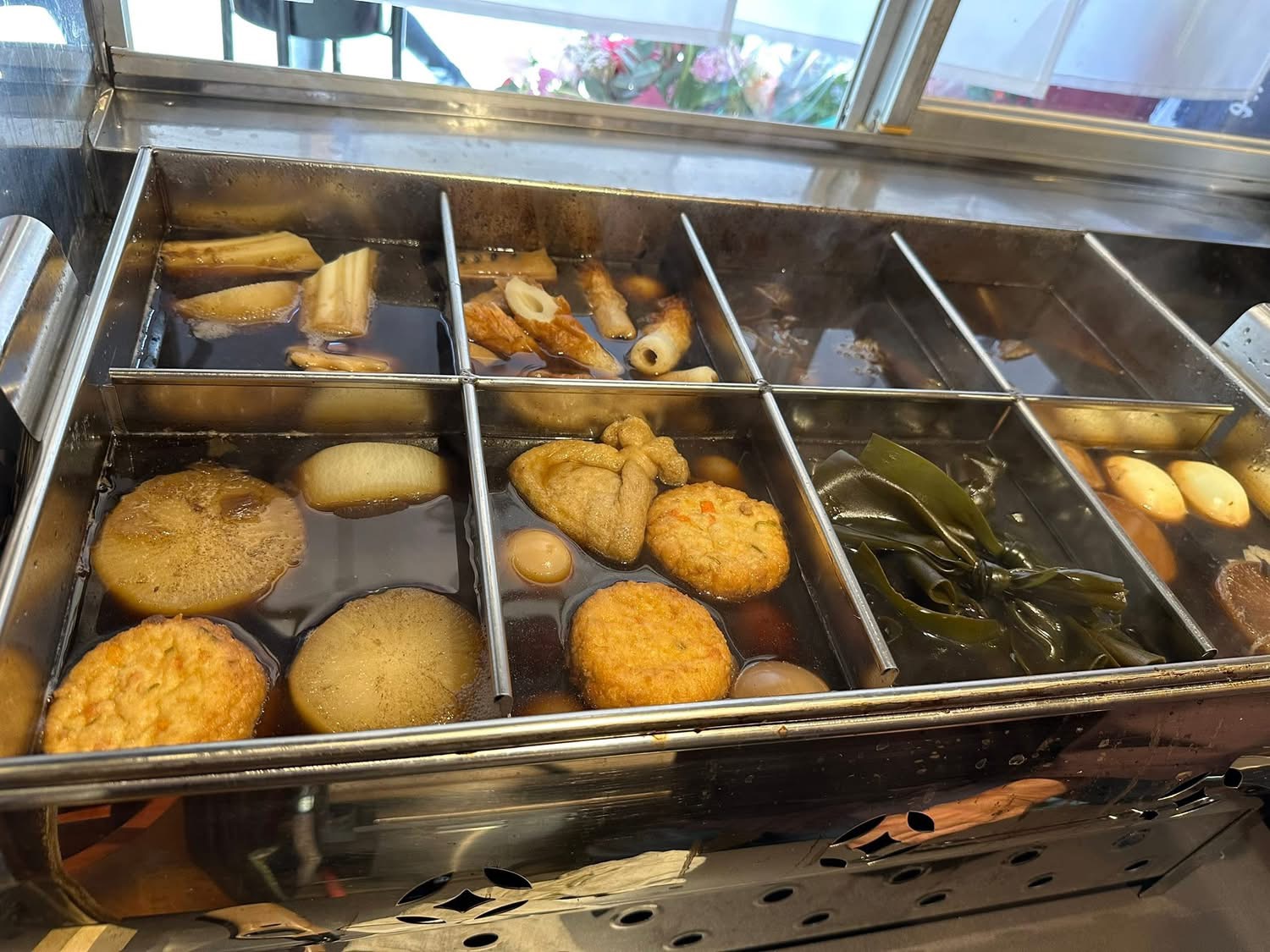 看板メニューは、出汁の染みたアツアツの「おでん」と、